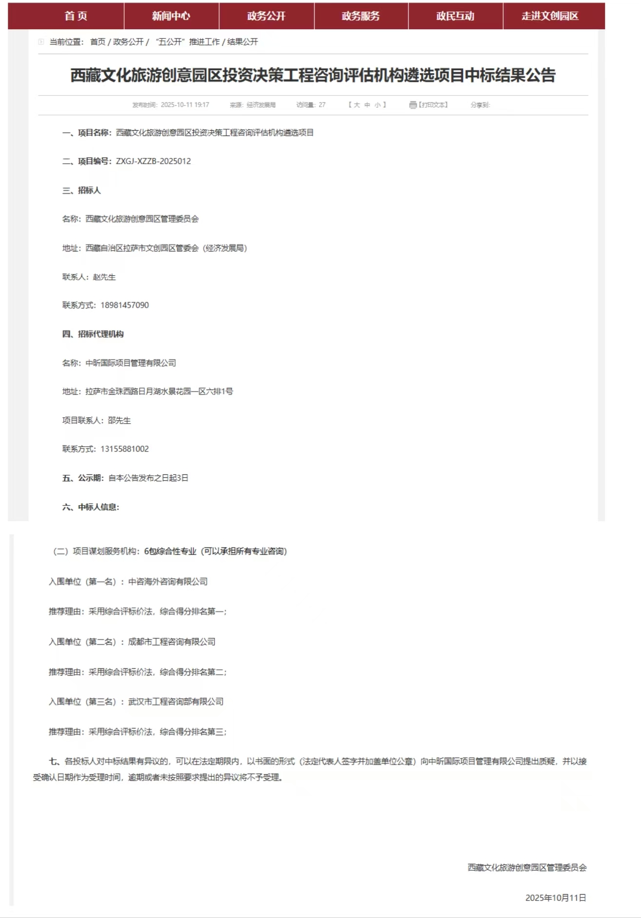 近日,成都市工程咨詢有限公司成功中標(biāo)“西藏文化旅游創(chuàng)意園區(qū)投資決策工程咨詢評估機(jī)構(gòu)遴選項目”,未來將作為綜合性專業(yè)咨詢機(jī)構(gòu),為園區(qū)提供覆蓋項目全周期的投資決策咨詢及評估服務(wù)。